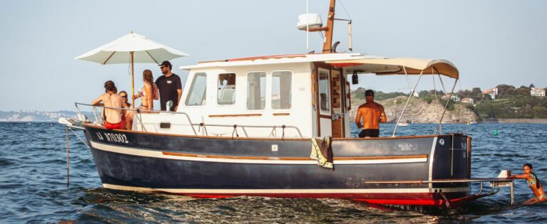 Une balade en bateau permet de vivre le Pays Basque différemment : prendre le large, profiter du calme de l’océan, se baigner en pleine mer ou simplement admirer la côte sous une lumière unique. Un moment privilégié pour découvrir le littoral basque dans toute sa beauté.